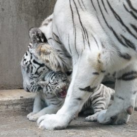 白虎媽下令「過來學用爪子」 屁孩小白虎還想玩…被叼走一臉氣噗噗
